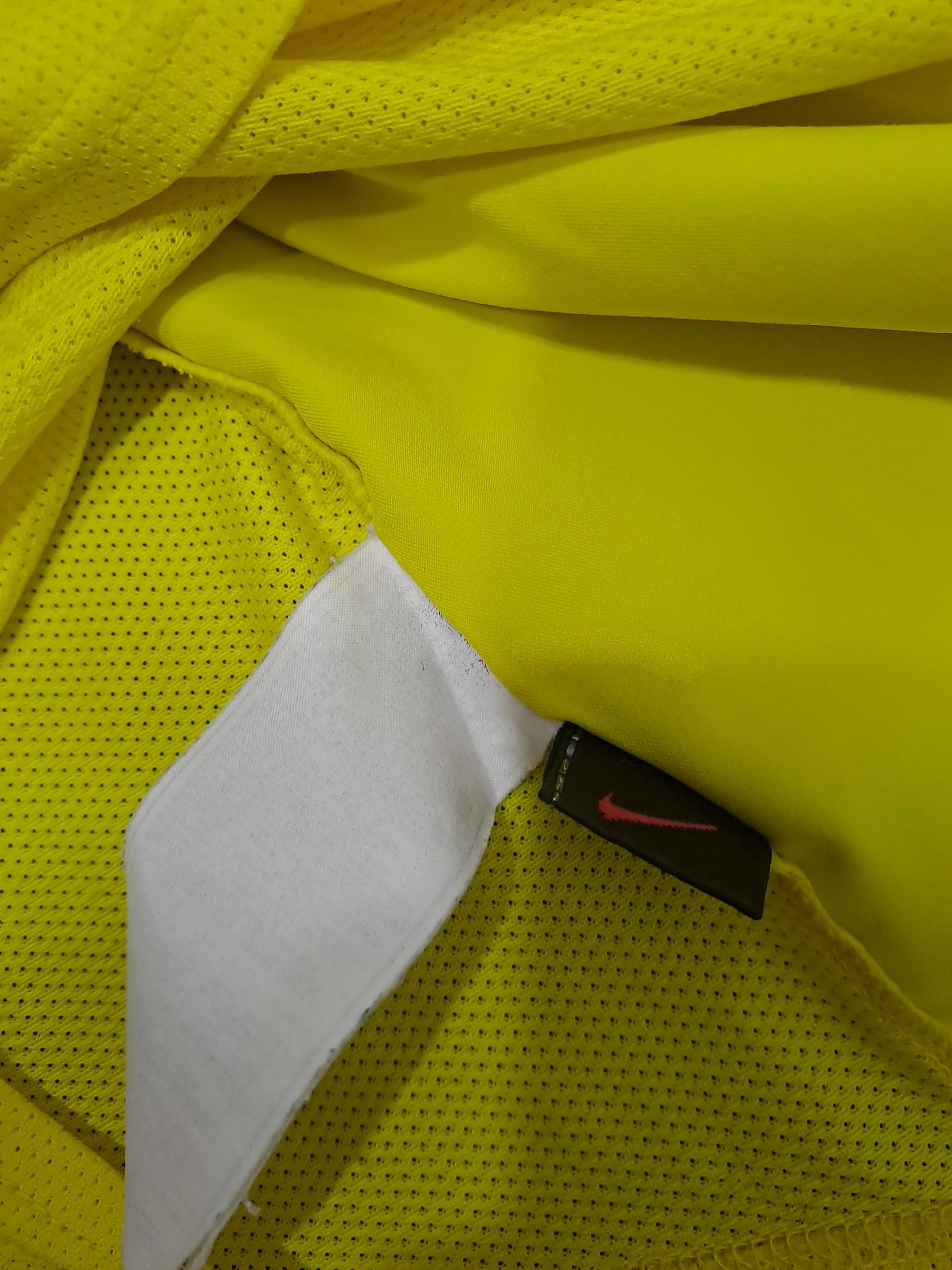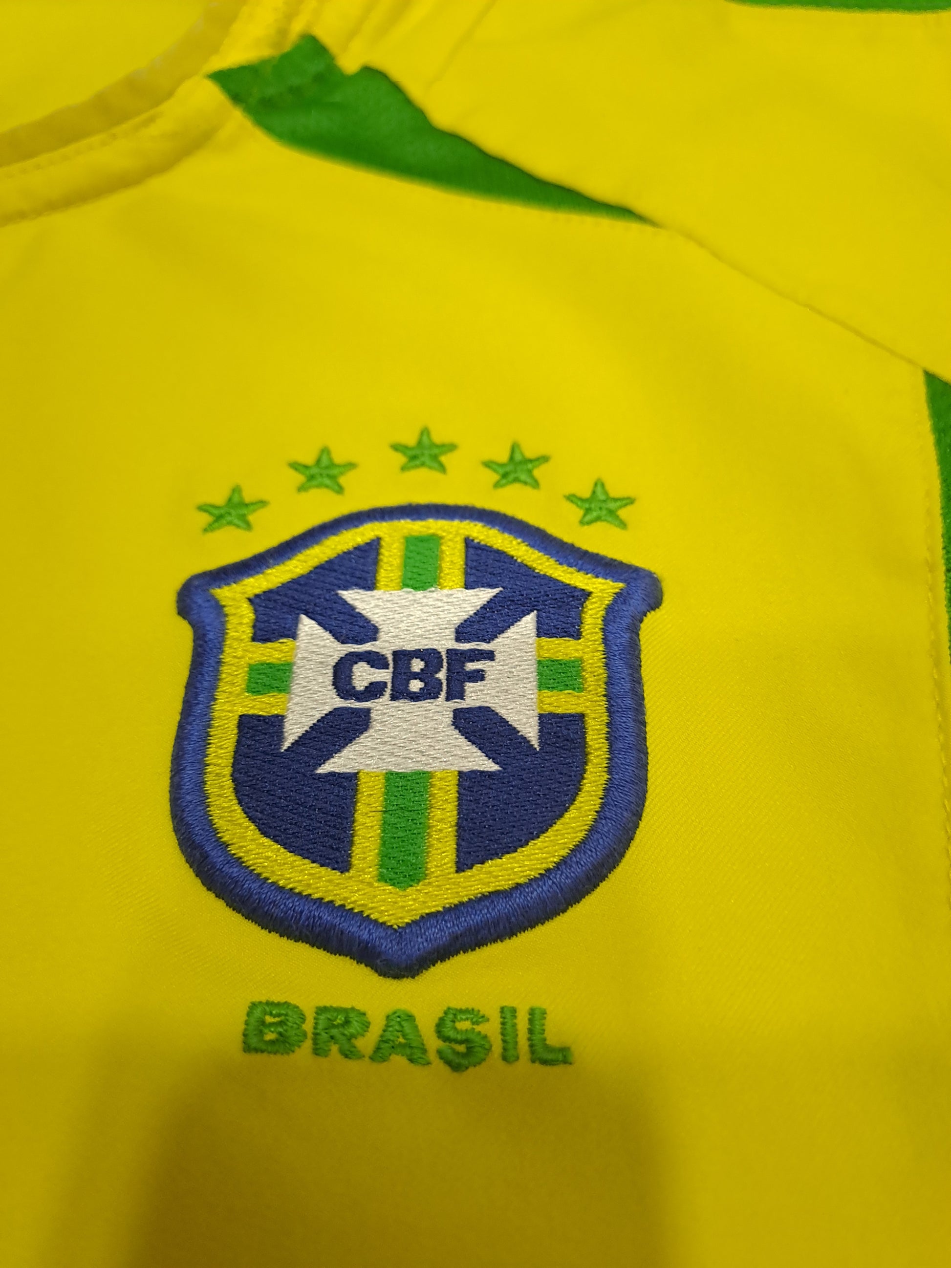 Camiseta original de la selección de Brasil fabricada por Nike para el Mundial de 2002 en Corea & Japón, torneo histórico donde la Canarinha conquistó su quinta Copa del Mundo con estrellas como Ronaldo Nazário, Rivaldo, Ronaldinho o Cafú. Presenta el inconfundible color amarillo con detalles verdes, escudo CBF bordado con cinco estrellas, y Swoosh Nike bordado en el pecho. Confeccionada en poliéster Nike Dri-FIT, ofrece gran ligereza y transpirabilidad, con el diseño característico de principios de los 2000. Esta unidad, en talla M, conserva colores vivos y tejido firme, mostrando un desgaste lógico en la parte trasera (pequeños enganches en la zona de malla), acorde a su antigüedad. Una pieza icónica para coleccionistas de camisetas de selecciones y amantes del fútbol retro, que evoca el Mundial donde Brasil levantó su quinto trofeo.
